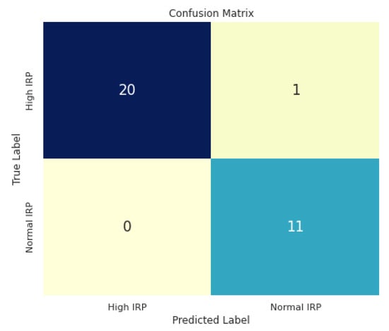 After preprocessing the whole dataset of images and finding the region of interest for IRP in each image, we trained our CNN model to classify normal or high IRP images. The results of the trained neural network were very promising, and the evaluation scores are presented in Table 1.