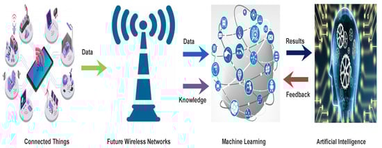 - Internet of Things—connecting everything: the 5G mobile network plays a significant role in developing the Internet of Things (IoT). IoT will connect many things with the internet like appliances, sensors, devices, objects, and applications. These applications will collect lots of data from different devices and sensors. 5G will provide very high-speed internet connectivity for data collection, transmission, control, and processing. 5G is a flexible network with unused spectrum availability, and it offers very low-cost deployment that is why it is the most efficient technology for IoT [42]. In many areas, 5G provide benefit to IoT are as follows: