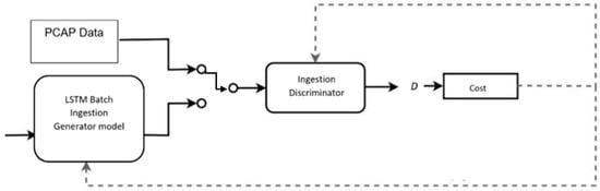 We proposed an alternate method that uses mini-batch discrimination optimization to solve GAN mode collapse. Mini-batch discrimination is used in addressing mode collapse problems in the GAN in different contexts for image processing, which is different from our applications. In the mini-batch-based discrimination in GAN, the discriminator looks at mini-batches of samples but not individual samples to limit the generator’s mode collapse [,]. In this concept, as the discriminator considers a batch of samples, it could be easier to spot a single-mode collapse. The discriminator understands when all the samples (data) in the batch are closer to each other, the data could be fake []. The generator, therefore, could be forced to generate many outputs that are good from each batch of samples []. Work in [] studied mode collapse limiters for over-optimization of the generator and used a generator loss function that incorporates the current discriminator’s classifications, whereas the work in [] considered the vanishing gradient inclusions for the discriminator of a GAN for image-based applications. Similarly, PCAP data overfitting reduction was studied in [] for generator data balancing, whereas, in our proposed approach ICF-GAN, the LSTM unconditionally ingested into the discriminator for system model injection for integration and PCAP data overfitting reduction by leveraging LSTM layer optimization without overfitting by labeling and loss function modification.