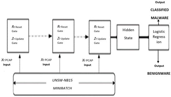 Due to the proposed architecture, a series of LSTM for the mini-batch methodology, mode collapse is presented. LSTM, long short-term memory, is a variant of recurrent neural networks (RNNs) and the cornerstone in deep learning for sequential predictions. The proposed model has a series of LSTM similar to a Gated Recurrent Unit (GRU), and the LSTM with a combination of in an updated state from the forget and input gates is leveraged []. A merger of the cell state and hidden state provision the mini-batch predictions as output. After limiting mode collapse accounts are modeled, performance can be more improved through additional training. Our goal is to enhance the accuracy of malware detection with a mode collapse limiter. Figure 3 below shows the LSTM architecture.