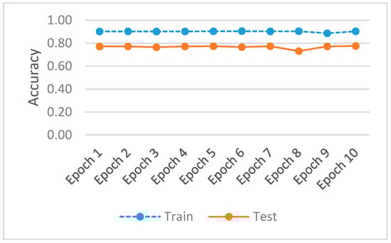 Out of 100 epochs, the last 10 epochs are plotted in Figure 5 for accuracy and in Figure 6 for model loss. The layer forecasts an incremental improvement for the GAN model, developed for hazard control flow and botnet anomaly detection by provisioning a deeper architecture.