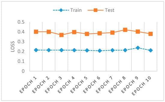 Figure 6 shows a model loss for training and testing of our approach with the UNSW NB-15 dataset. Mini-batch options a variation on a gradient descent algorithm, dividing a training dataset by appointed small batches (example batch size 32, 64, 128) used to calculate the model error for recalibration of model coefficients. The current results pace the training and testing within an acceptable margin for the batches allocated from the UNSW NB-15 dataset, offering, as a layered optimizer, prudent assistance to limiting mode collapse. The preferred model loss measures a comparative delta of 0.1545 (0.2142 to 0.3687) and the accuracy delta of 0.1149 (0.887 to 0.7721).