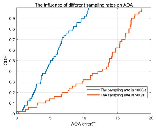 In our case, 1000 data packets are collected every second. If the sampling rate is small, what will happen? For this reason, we compare the error in the case of the sampling rates of 500/s and 1000/s, as shown in Figure 16. As the sampling rate decreases, the error increases, as we would expect.