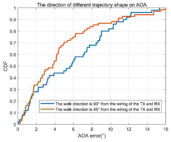 In order to understand the impact of different motion directions on the algorithm in this paper, we analyze the two cases of the walking direction and receiving and receiving line being 90° and 45°.