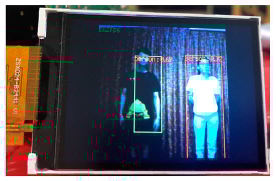 The confusion matrix was used to evaluate the person detection model’s efficiency in Grove AI HAT and Google Colab. The detection model was trained to predict the “person” class and generate a bounding box to the detected person in the LCD. According to Table 7 and Table 8, Google Colab achieves 95.45% accuracy in person classification, whereas Grove AI HAT achieves only 74.65% accuracy. Grove AI HAT does not detect people from a far distance due to memory constraints and the KPU in Grove AI HAT only allows a 224 × 224 image input resolution from the camera. Moreover, the kmodel neural network file size loaded into Grove AI HAT is 1.8 MB, less than the 202 MB file weights used in YOLOv4. Because of their low hardware performance requirements, small neural networks are ideal for edge devices, but they can also produce lower accuracy values.