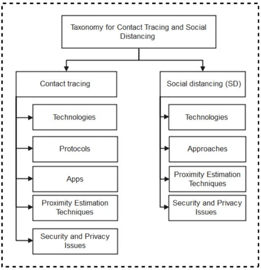 Figure 1. Taxonomy of contact tracing and social distancing methods to combat Covid-19.