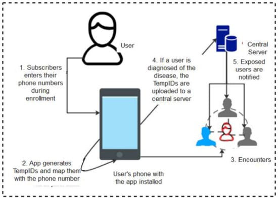 Contact tracing is a public health intervention scheme aimed at timely identification, isolation, and diagnosis of people who are at the risk of contracting infectious diseases as a result of their close interactions with already infected persons. This scheme is necessary because some infected persons are healthy carriers who may not go down with the signs and symptoms of the disease but keep infecting others when they interact with them. The overall purpose of the contact tracing scheme is to truncate the infection path to halt the further spread of the disease [2]. Conventionally, contact tracing is performed through manual methods or technological-based methods. The manual method is performed by interviewing infected persons to get the names, addresses, and other details of people who came in close contact with them within a specified period believed to be the incubation period of the infectious disease. The named contacts are thereafter invited for diagnosis and interviews repeating the cycle until the infectious disease is fully contained. However, the use of manual approaches for contacting tracing has been observed to be tedious, expensive, and time-consuming. Moreover, the effectiveness of the manual approach cannot be guaranteed since the infected persons have to solely rely on the recollection ability of the fallible human memory for contact data collection. Another limiting factor is that the privacy of both the infected persons and their contacts cannot be protected in the manual scheme [3,4]. Due to the inefficiency of manual-based contact tracing methods, technological-based approaches are widely adopted to minimize the spread of coronavirus disease. The technological approaches of contact processing are the main focus of this paper.