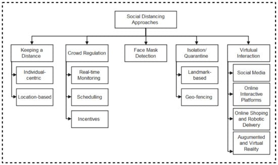 On the other hand, social distancing is a public health intervention scheme aimed at minimizing close human interactions and physical contact that may lead to the spread of deadly diseases [5]. For effective social distancing against COVID-19, it has been recommended that people should keep a minimum of two meters distance from each other [6]. Traditionally, social distancing is implemented using policy statements by government authorities such as the closure of public places, placing a ban on public gatherings and events such as funerals, wedding ceremonies, etc. [7]. However, these state-of-the-art approaches not only cause discomfort to the people but also negatively impact their social life and source of livelihood [8,9,10].