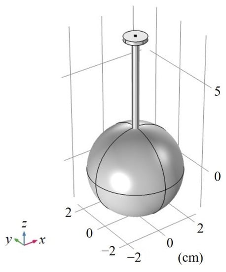 One end of the tube was coupled with the sphere and a microphone was installed at the other end, corresponding to the state of ‘open’ and ‘closed,’ respectively. In most cases, the first-order longitudinal resonance frequency could be approximately calculated by Equation (8). However, to prevent the diaphragm at the end of the microphone from being worn during installation, a cylindrical gap with a length of 2 mm and a diameter of 12.3 mm was reserved between the microphone and the end of the tube. Therefore, for the STPAC developed in this paper, there would be an error between the resonance frequency calculated by Equation (8) and the actual resonance frequency. With the development of the numerical calculation, the resonance frequency of an irregular PA cell could be obtained by finite element simulation.