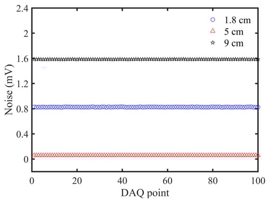 Noise distribution of STPAC with different length tubes in the first-order longitudinal resonance mode was analyzed with the pure N2 background. The LD was turned on, and the resonance frequency corresponding to different tube lengths was used to modulate the LD. Experimental results are shown in Figure 13.