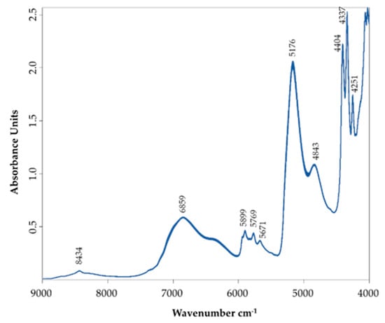 Figure 4 exhibits a representative NIR spectrum of the AWS, similar to those obtained by other authors for wine spirit, grape marc spirit, fruit spirits, whisky and vodka [28,29,37,40,41,42,43].