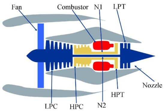 The C-MAPSS data set [3] is one of the most widely used data sets for prognostics and health management research. It contains the results of a turbofan engine simulation using a C-MAPSS (Commercial Modular Aero-Propulsion System Simulation) software provided by NASA (National Aeronautics and Space Administration). Figure 4 shows a simplified diagram of the simulated system.