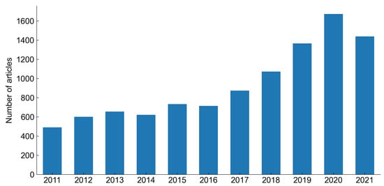 In recent years, there is an increasing number of articles related to predictive maintenance strategies. Figure 7 shows that the number of articles published yearly increased over 300% in the last 10 years. The increasing interest in predictive maintenance is connected with the so-called fourth industrial revolution and the development of the industrial Internet of Things technologies [7]. Raising self-awareness of the machine, which enhances its ability to self-diagnose and estimate its state of health, is one of the primary goals of cyber-physical systems (CPS) and Industry 4.0 [8]. The most effective solutions towards the development of predictive maintenance models are data-driven methods, which employ machine learning algorithms with a particular emphasis on deep learning methods [9].
