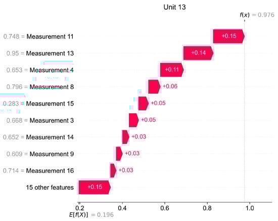 Local explanations of VAE model for a selected turbofan engine unit based on Shapley values.