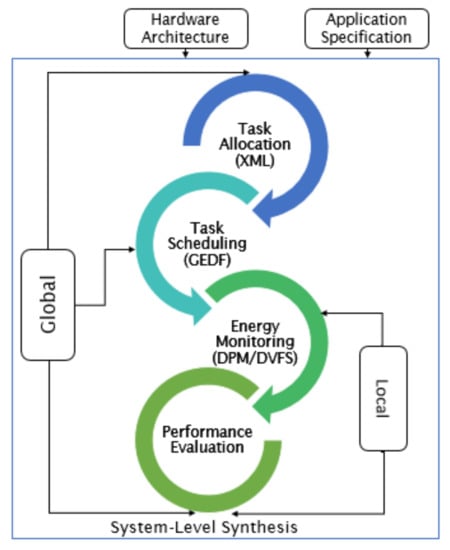 - Chen, G.; Huang, K.; Knoll, A. Energy optimization for real-time multiprocessor system-on-chip with optimal DVFS and DPM combination. ACM Trans. Embed. Comput. Syst. TECS 2014, 13, 111. [Google Scholar] [CrossRef] [Green Version]