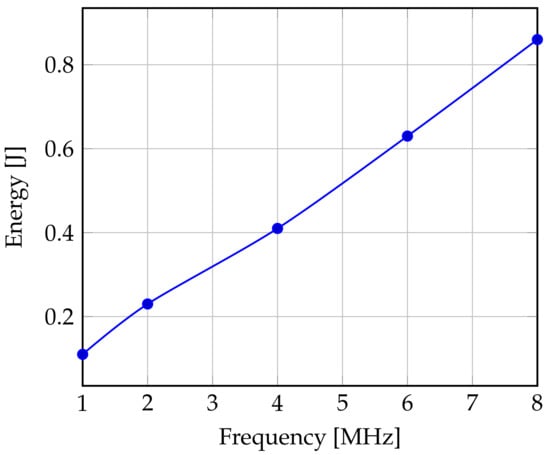 Figure 8 shows that if the CPU frequency changes with DVFS from MHz to 6 MHz, the energy is 0.86 J (5.5 V) and 0.63 J (4.05 V), respectively. The energy gain is then 26%. For this purpose, the lower the frequency, the greater the gain, when the ’ET’ is increased, the idle time is reduced, which can lead to a delay in execution justified by numerous instructions against a limited CPU processing capacity. The decrease of the frequency induces a nonlinear minimization of the energy dissipation but it achieves an energy saving, as shown in the Figure 8, between 26% and 52%.