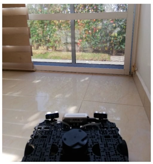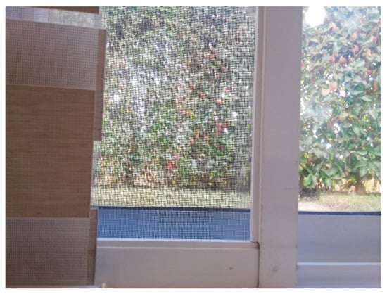 In the third and last scenario a combination of meshes are compared to show the effectiveness of the method used to detect the obstacles. In Figure 24 and Figure 25 we present the four different obstacles to detect. In the left side of the image a mesh window curtain. In the center we have an insect mesh trap door, and to the right of the image we have an unobstructed view of an outdoor environment through transparent glass. Please notice all the painted aluminum partitions.