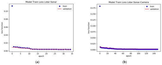 Model Validation Loss Function: (a) LiDAR-Sonar fusion; (b) LiDAR-Sonar-Camera fusion.