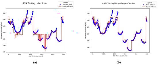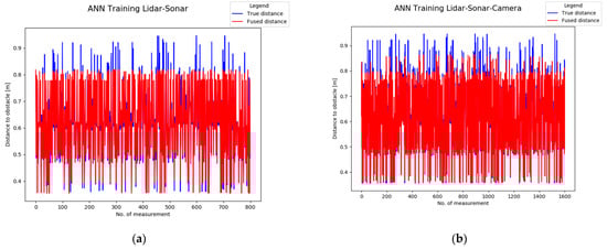 Validation of neural network with randomized data for: (a) LiDAR-Sonar model; (b) LiDAR-Sonar-Camera model.