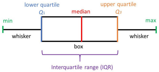 - Williamson, D.F.; Parker, R.A.; Kendrick, J.S. The box plot: A simple visual method to interpret data. Ann. Intern. Med. 1989, 110, 916–921. [Google Scholar] [CrossRef] [PubMed]