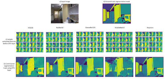 We selected depth-wise separable convolution as being suitable for the proposed DTS module based on the following main reason. The DTS layer constructs the final image using a pixel reordering technique through the channel axis to form super-pixels in the segmentation map, which highly depend on the feature-map quality. Depth-wise convolution extracts the features from each channel separately and then projects them using point-wise convolution. This approach extracts more accurate feature maps as the depth-wise convolution focuses on the data in each channel separately. These characteristics explain the good quality of the features extracted by the Xception and MobileNetV2 feature extractors.