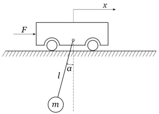 Figure 4 illustrates a planar model of an overhead crane, which consists of a trolley of mass M, moving along a fixed bridge only in the x-axis direction. A payload, of mass m, is attached to the trolley by a hoisting rope of length l. Furthermore, the payload is treated as a point mass, and the hoisting rope is considered to be inflexible and does not undergo any deformation.