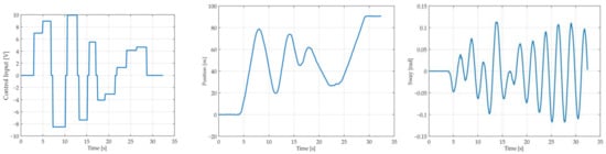 The training data were collected from 12 experiments carried out with different rope lengths in the range of 0.6–2 m and the payload mass in the range of 10–50 kg, while the testing data were obtained from the experiments performed for 0.9-meter, 1.3-meter and 1.7-meter ropes and a payload mass between 10 kg and 40 kg. The experimental input sequence consisted of a series of step functions with varying amplitudes to try to excite the system without violating the input as well as positional constraints. An example of the input sequence with the corresponding position and sway response from one of the training data sets is presented in Figure 12. Table 6 presents the MGGP parameters.