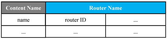 With the ubiquity of mobile devices and the increasing speed of network connections, there have been significant changes in Internet usage. Rather than providing fundamental connectivity, the Internet has essentially evolved into largely a distribution network with vast volumes of social and media content flowing from content providers to consumers []. In Internet communication, there has been a significant paradigm shift from current service-oriented to content-oriented [,,]. Instead of knowing where the content provider is, today’s Internet users are more interested in fast, efficient, and secure content retrieval [,,]. As a result, architectures for Information-Centric Networking (ICN) have been proposed and widely developed [,]. Content-Centric Networking (CCN) is the most potential and innovative of all the ICN-based networks [,]. CCN is a name-based protocol that employs the content name as the search target rather than the IP address as the network routing destination. It can be applied to different scenarios, such as high-speed data centers, the Internet of Things (IoT), mobile edge computing, and sensor networks with limited resources. Compared to traditional Transmission Control Protocol/Internet Protocol (TCP/IP) communication protocol, CCN is more flexible and scalable by allowing data to be cached in routers and using interest with content name, which is the name of the required data, as the query packet []. The response time of interest can be significantly reduced by utilizing efficient routing and in-network caching [].