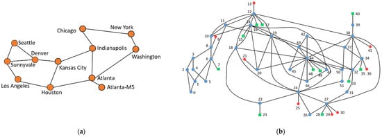 SPT: There are two types of networks: static and dynamic, based on network traffic. The transmission time between any two connective routers is identical in a static network, while the transmission time between any two connective routers is different in a dynamic network. In a static network, the hop count might be considered a cost. The SPT is sustainable as long as the network topology is static and the shortest paths between any two routers are fixed. In a dynamic network, the cost can be traveling time or other metrics that are impacted by network conditions (such as congestion). Many traditional network routing algorithms, such as Open Shortest Path First (OSPF) [], can be used to optimize SPT. OSPF is a TCP/IP network routing protocol that is dynamic, hierarchical, and Link–State []. OSPF uses Dijkstra’s shortest path algorithm to find the best router []. In this paper, the network is static and the cost is the number of hops. The SPT is only updated when the network topology changes.