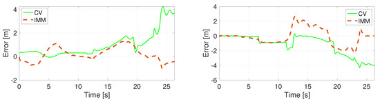 Position error in direction X (left) and Y (right) using the CV model.