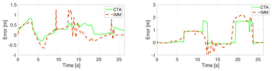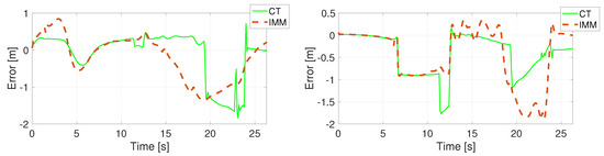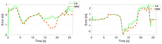 Position error in direction X (left) and Y (right) using the CTRA model.