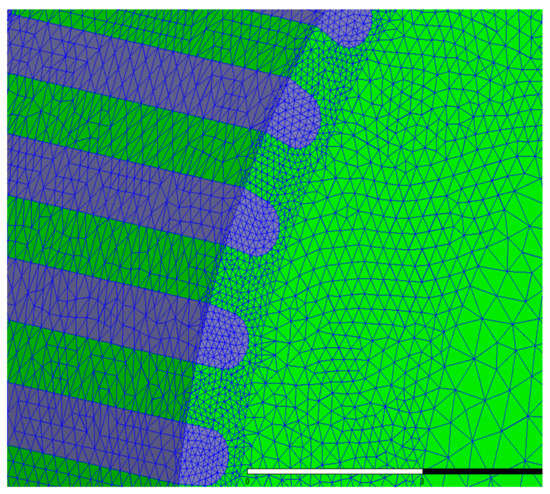 The FEM mesh around the rotor teeth of the motor.