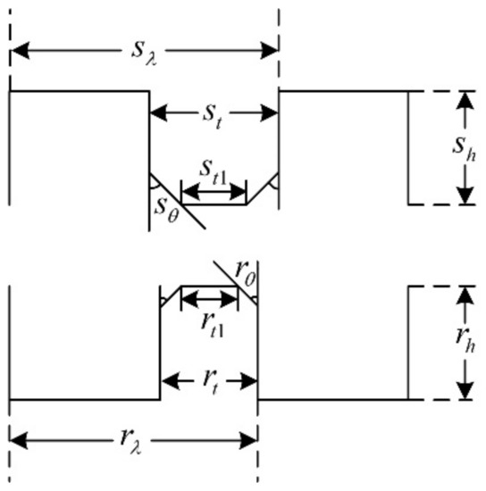 In the past decades, researchers put forward different opinions about the tooth shape, such as it being rectangular, triangular, circular, and so on [20,21,22]. Among them, the rectangular tooth shape shown in Figure 6 has been widely used in many products. However, according to practical experience, the trapezoidal tooth shape, as shown in Figure 7, is much better than the rectangular one, because this tooth profile contains more shape parameters and allows more degrees of freedom for optimization, making it easier to achieve the required motor performance.