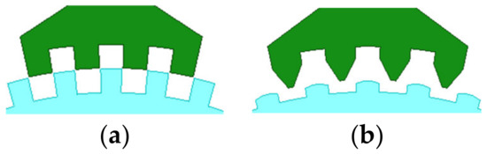 Tooth geometry after optimization: (a) initial 3P-HSM; (b) THD-min 3P-HSM.
