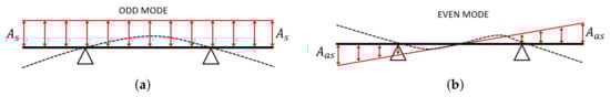 where at the left-hand side and is the damping ratio of the kth mode. At the right-hand side, the first term, which corresponds to the symmetric component of slat acceleration, is non-zero only for the odd modes; the second term, which corresponds to the anti-symmetric component of slat acceleration is non-zero only for the even modes of vibration.