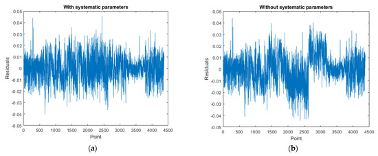The residual distribution plots of dataset DATA1. (a) with Aps; (b) without Aps.