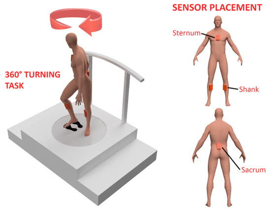 Prior to experimentation, the motion capture system was calibrated according to their respective anthropometric measurements for reliable data collection using the N-Pose pre-defined setup in the software. Participants were then instructed to stand on the footprint marker placed on the floor and look straight. Specifically, they were told to avoid looking at the floor as they performed the task. Each participant performed an on-spot 360-degree turning at their comfortable pace with the end-position indicated to the participant with the help of a virtual target.