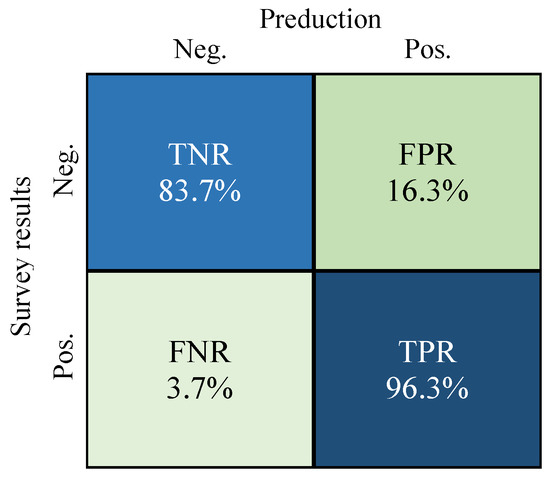 In general, accuracy, true positive rate (TPR), true negative rate (TNR), false negative rate (FNR), and false positive rate (FPR) are used as criteria for evaluating the performance of supervised machine learning, as defined by: