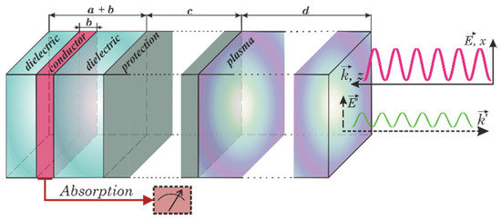 Here, a is the thickness of the dielectric layer (acting as a resonator) with permittivity , d and εd are the same parameters for the plasma sheath (typically d = 5 – 10 cm, plasma density cm−3) and is the permittivity of the atmospheric air.
