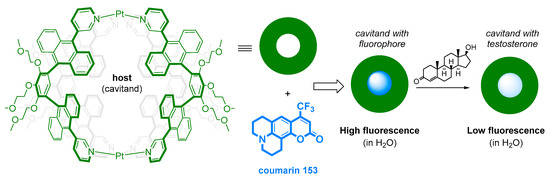 Another modern approach in the determination of AASs uses chemically generated host structures of macromolecular character, which can non-covalently interact with the analyte of interest via hydrogen bonds, van der Waals forces, and hydrophobic interactions in the internal cavity of the host structure. Such a procedure increases the solubility of lipophilic AASs in aqueous media, which is essential for the possibility of direct analysis of biological fluids. A critical point in the determination of AASs then brings the use of such structures for the host-guest displacement assay, in which the target analyte “pushes” the fluorophore out of the host structure under detectable fluorescence modulation within a single molecule.