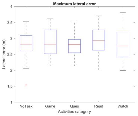 Maximum lateral error achieving. An outlier is presented with the plus sign which represents a high concentration level of the driver during the road checking task.