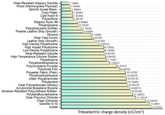 Familiar materials used for triboelectric and their triboelectric charge density [106].