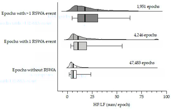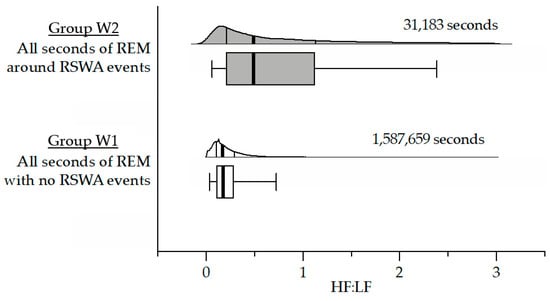 2.3. Epoch-Based HF:LF Analysis: Grouping Based on the Number of REM Sleep without Atonia Episodes per REM Epoch
