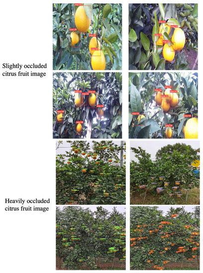 Figure 9 visualizes the effect of our citrus detection model. We showed the detection effect of citrus fruits with mild occlusion and severe occlusion, respectively.