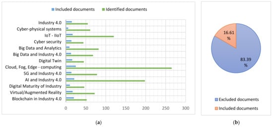 (a) Ratio of exclusion and inclusion of documents of each paradigm and key technology; (b) Percentage of documents included and excluded with respect to the total.