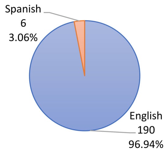 Initially it was stated that the languages accepted would be English and Spanish, with preference always given to English. However, some interesting contributions in Spanish were found and considered. Figure 9 gives the language ratio of the total number of references consulted.