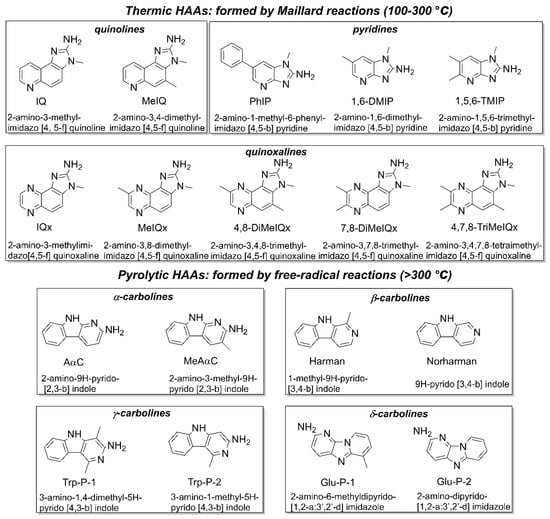 - Szterk, A. Heterocyclic aromatic amines in grilled beef: The influence of free amino acids, nitrogenous bases, nucleosides, protein and glucose on HAAs content. J. Food Compos. Anal. 2015, 40, 39–46. [Google Scholar] [CrossRef]