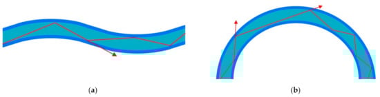Similar with the tapering structure, bending the fiber can also increase the evanescent field power, which is mainly caused by the changes of RI profile and mode field distribution [83]. The bending can be classified into micro-bending and macro-bending. Micro-bending fiber usually means that the curvature radius of the fiber is comparable with the diameter of the fiber, as shown in Figure 6a. While for the macro-bending fiber, the curvature radius is usually much larger than the fiber diameter as shown in Figure 6b [84].