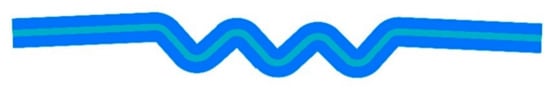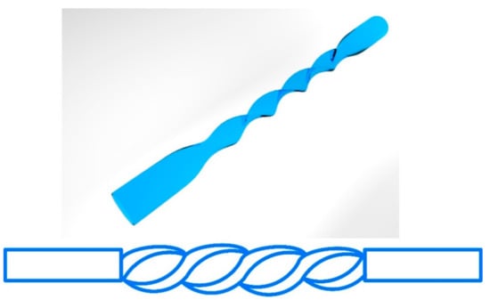 In addition, a screw-shaped POF was fabricated through a heat pressing and twisting method and proposed for RI sensing by this group, as shown in Figure 14 [110]. This structure can lead to periodic coupling between core modes and cladding modes, which is similar to the working principle of LPG. The results showed that when the screw-shaped POF was fabricated by twisting a thin flat-shaped POF with a thickness of 600 µm and with a screw pitch of 2 mm, the highest sensitivities of 2277%/RIU, 4318%/RIU, and 4399%/RIU with the resolutions of 3.10 × 10−4 RIU, 1.63 × 10−4 RIU, and 1.60 × 10−4 RIU were obtained in the RI ranges of 1.33–1.37, 1.37–1.40, and 1.41–1.45, respectively.