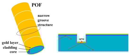 The schematic diagram of the narrow grooves structure, POF-based surface plasmon resonance sensor [118].